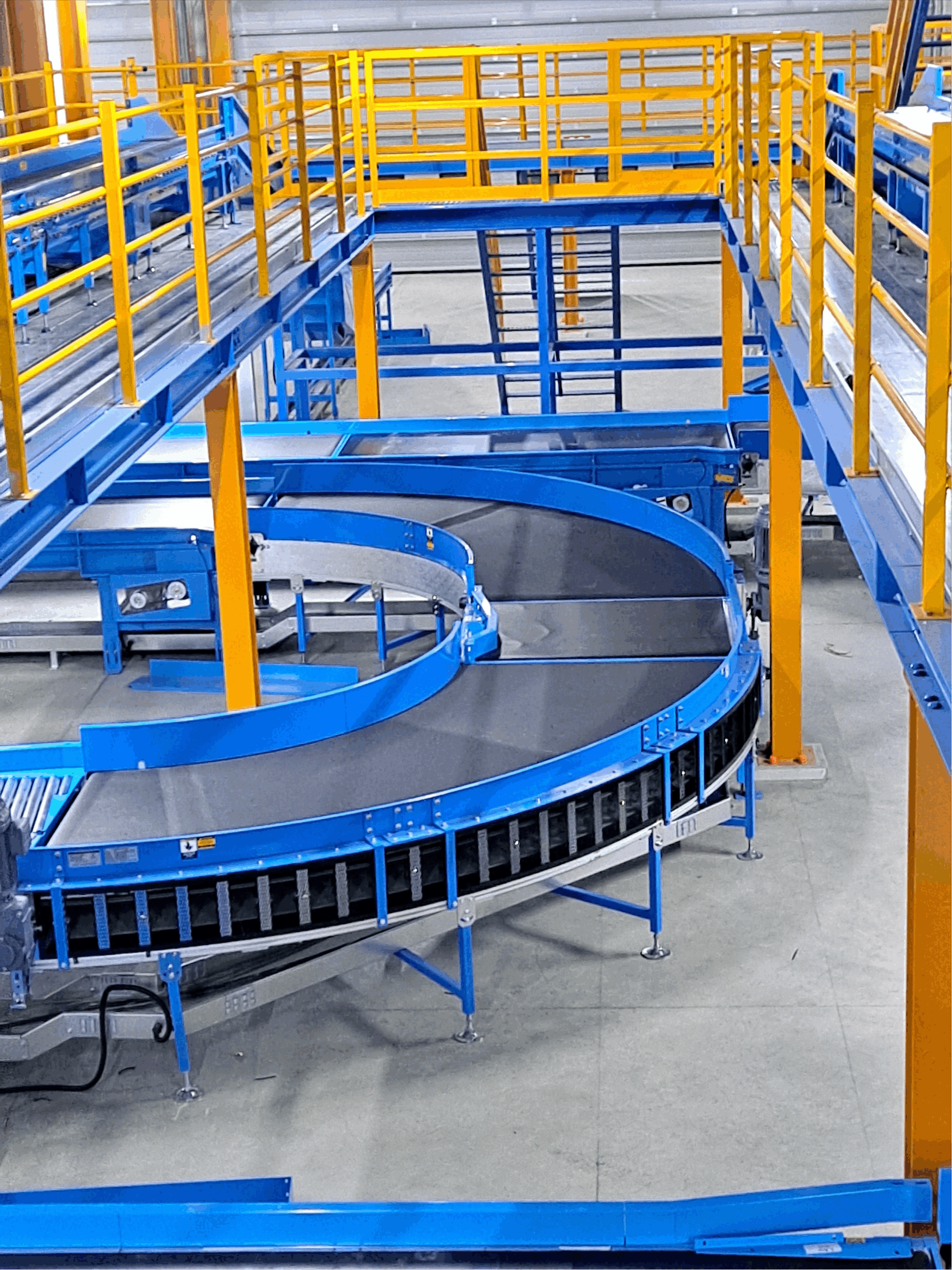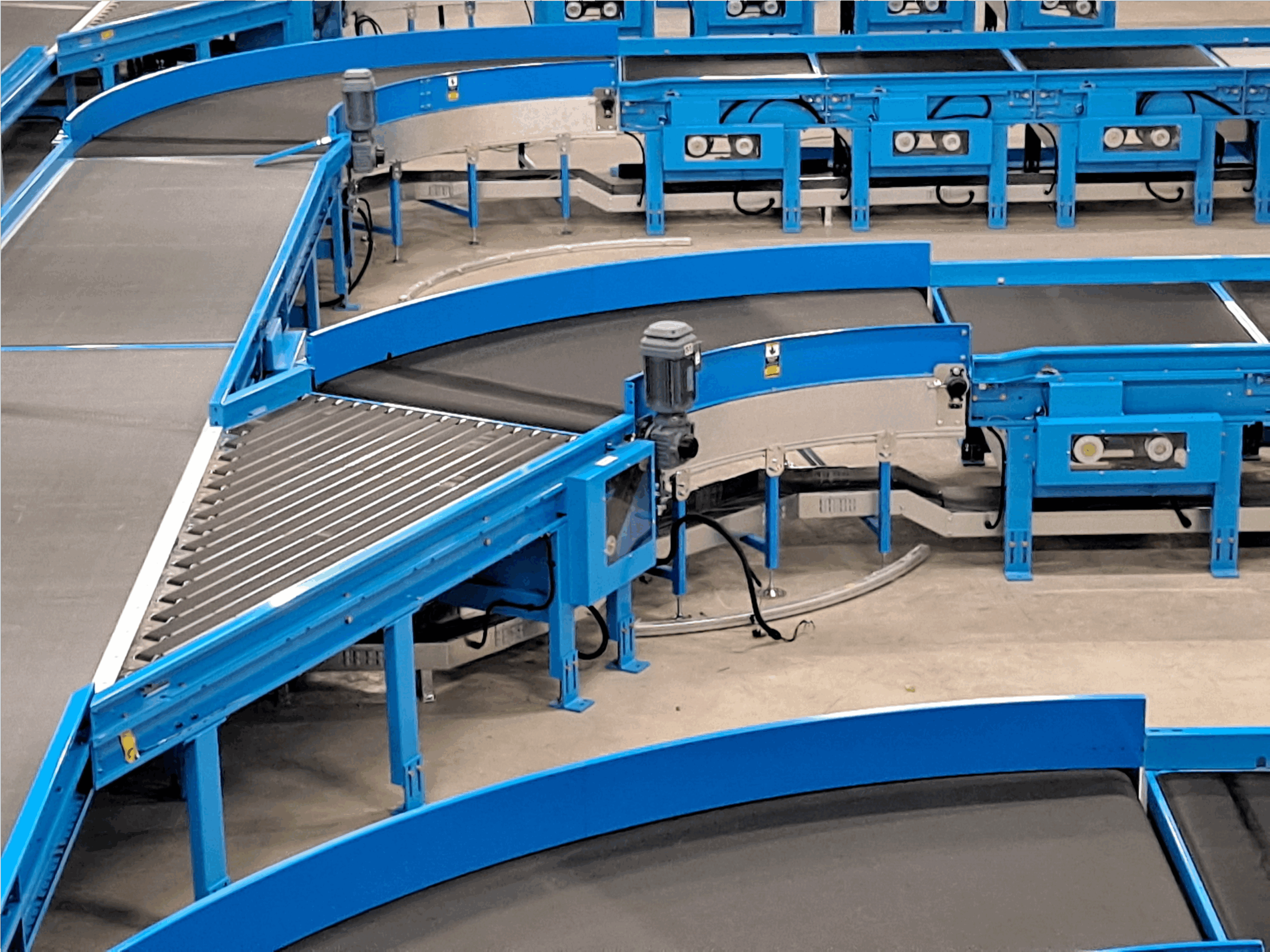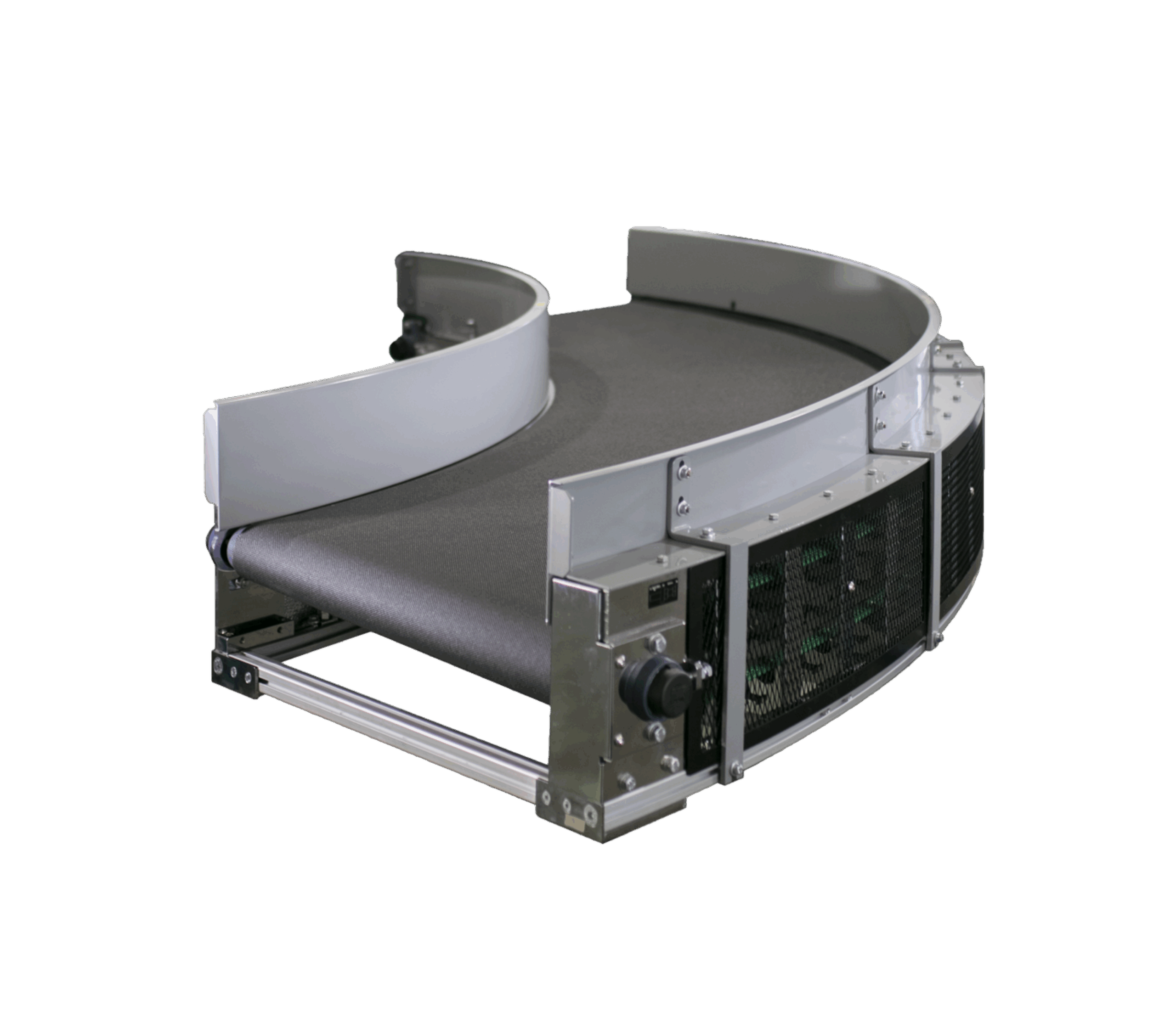 Curve belt conveyor는 물류자동화 설비 중 30°,45°,60°,90°의 방향 전환용으로 사용하는 설비로서 Drive roller conveyor로도 제품의 안정적인 이송이나, 고속으로 이송할 때, 또는 제품을 인식하여 수량 카운트가 필요할 때 반드시 필요한 제품 입니다.