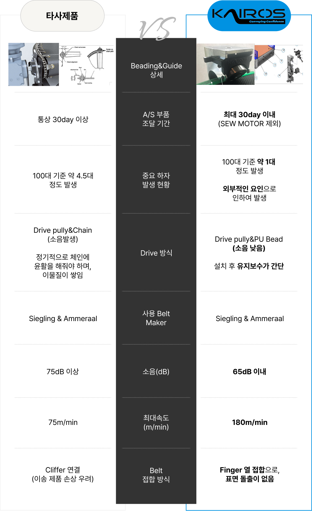 • Drive & Tail부의 고주가 간단하여, Belt 교체 시간 단축