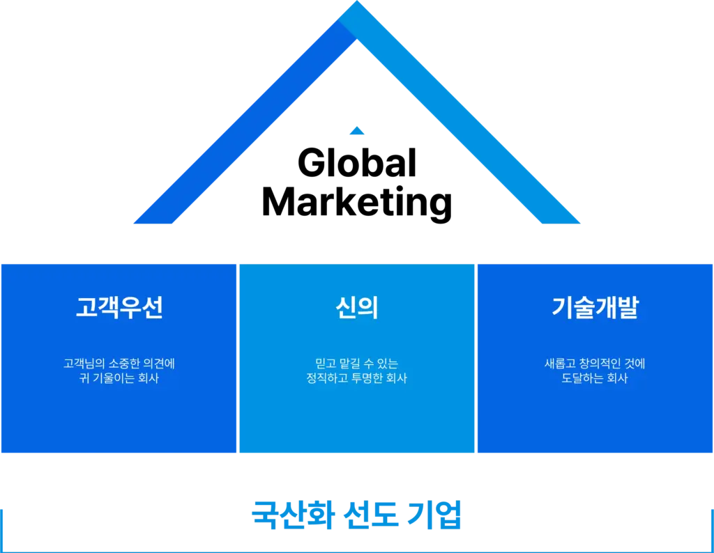 Global Marketing선두업체로 도약하고 기술개발을 통한 국산화 선도 기업이 되도록 하겠습니다.